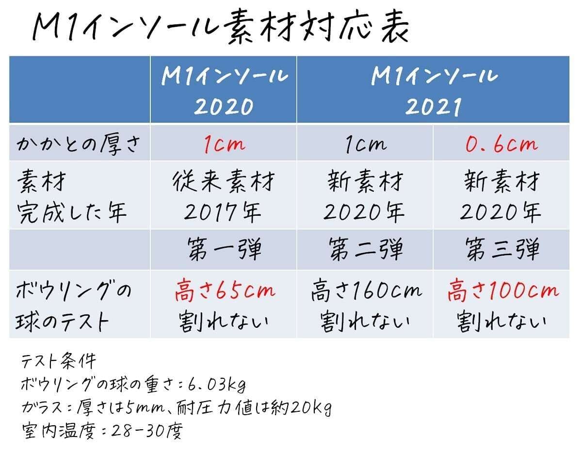そして、会社設立(2005年9月)から15年後の2020年10月、今回のM1インソール2021 かかとの厚さが0.6cmの素材を完成させました。