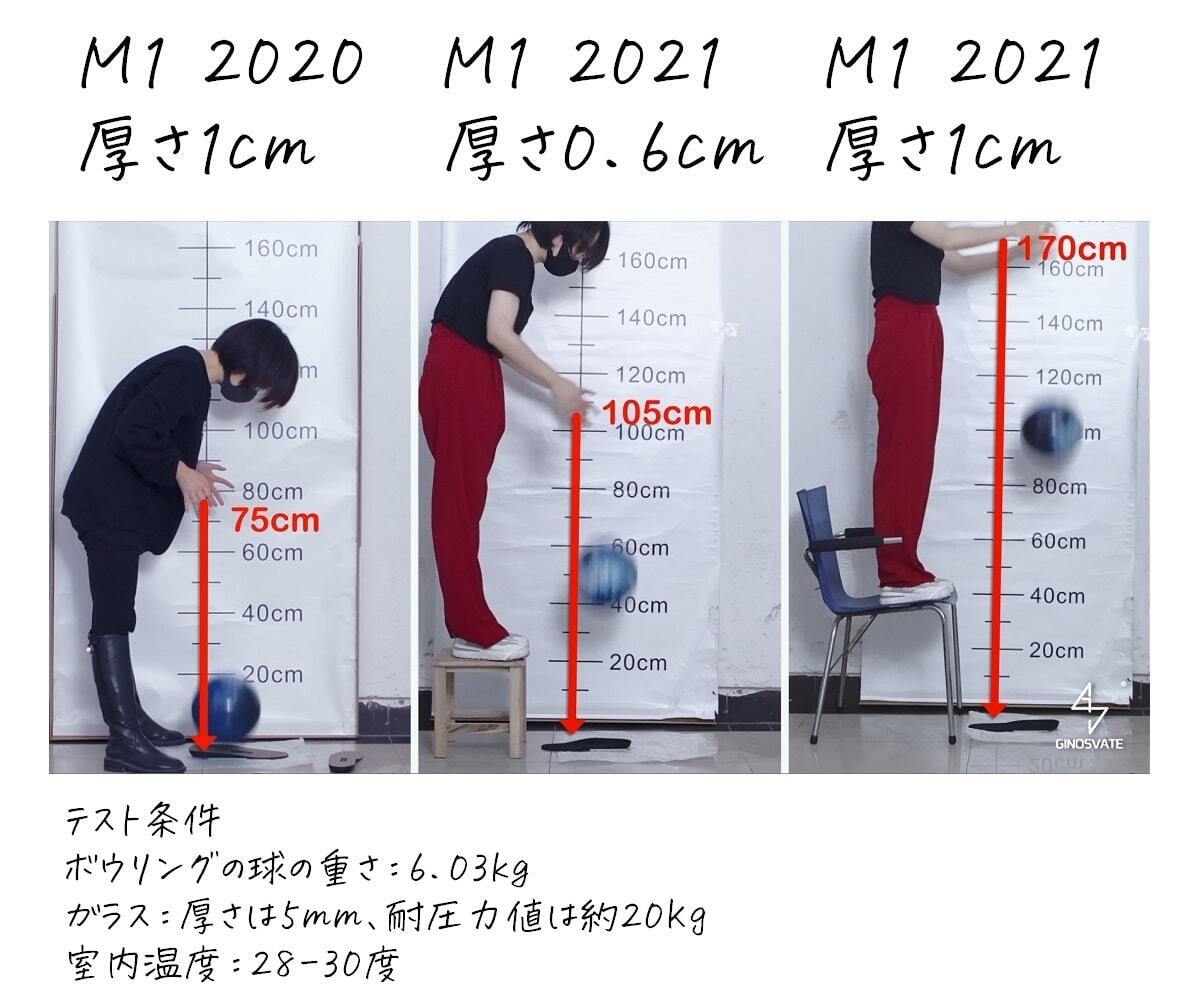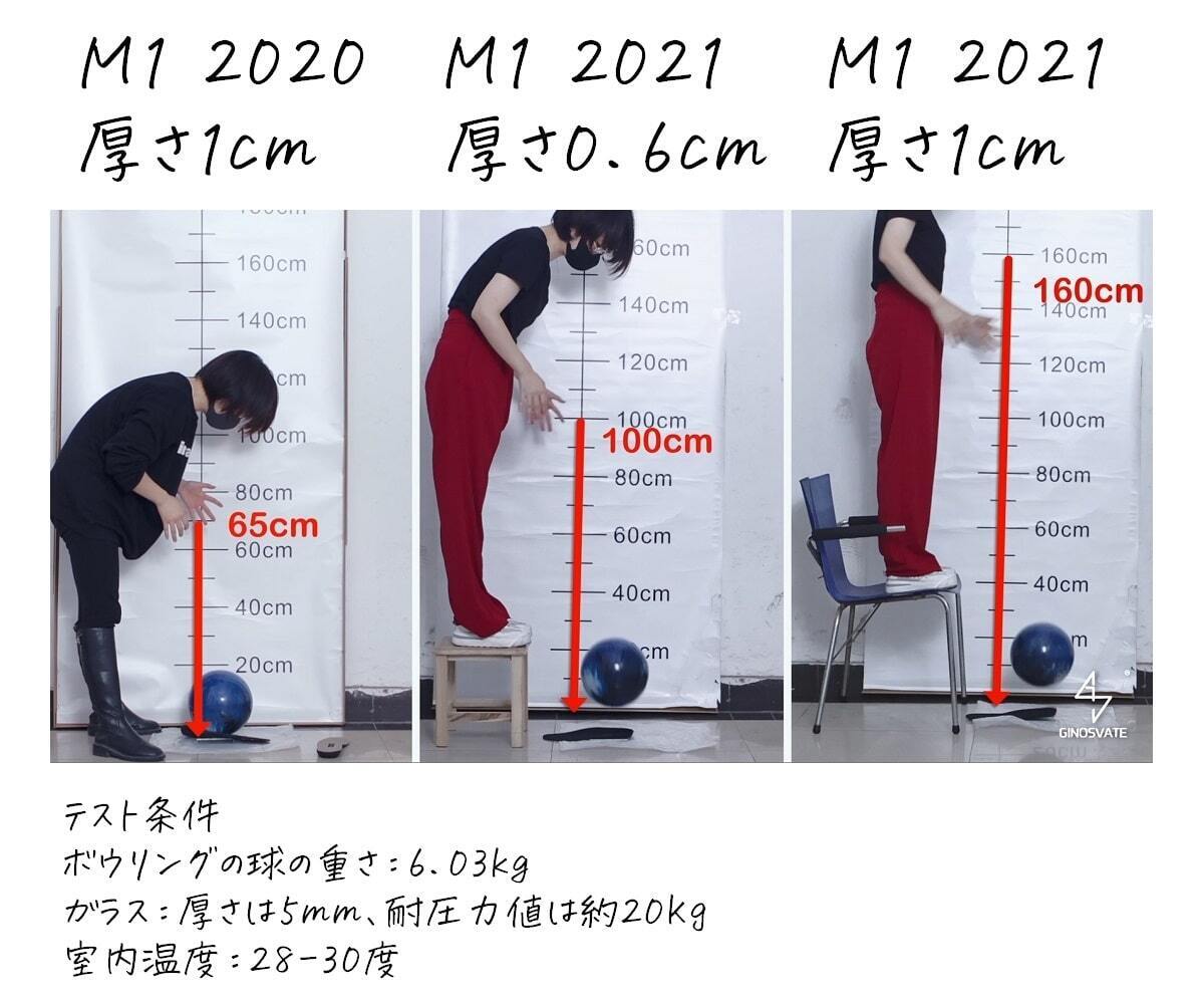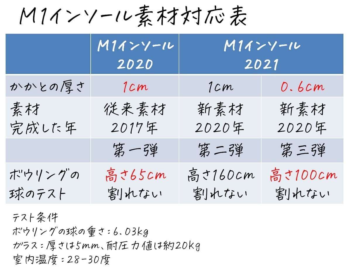 今回のM1インソール2021 かかとの厚さが0.6cmは、第一弾プロジェクトのインソール(かかとの厚さが1cm)よりも、ボウリングの球を使ったテストでは、衝撃吸収力が1.5倍くらいあります。