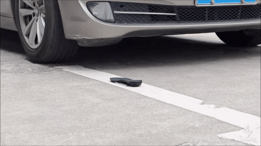 M1インソール2021 かかとの厚さが0.6cmを車のタイヤでつぶしても、すぐに元の形状に戻りました。また、M1インソール2021 かかとの厚さが0.6cmの下に置いたガラスは無傷でした。