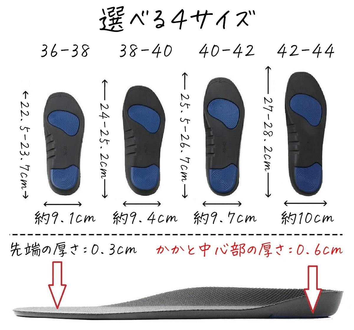 ※かかと中心部の厚さが0.6cmのため、ジャストサイズの靴、紐で調節のできない靴でのご使用は、窮屈になったり、ご使用いただけない場合がございます