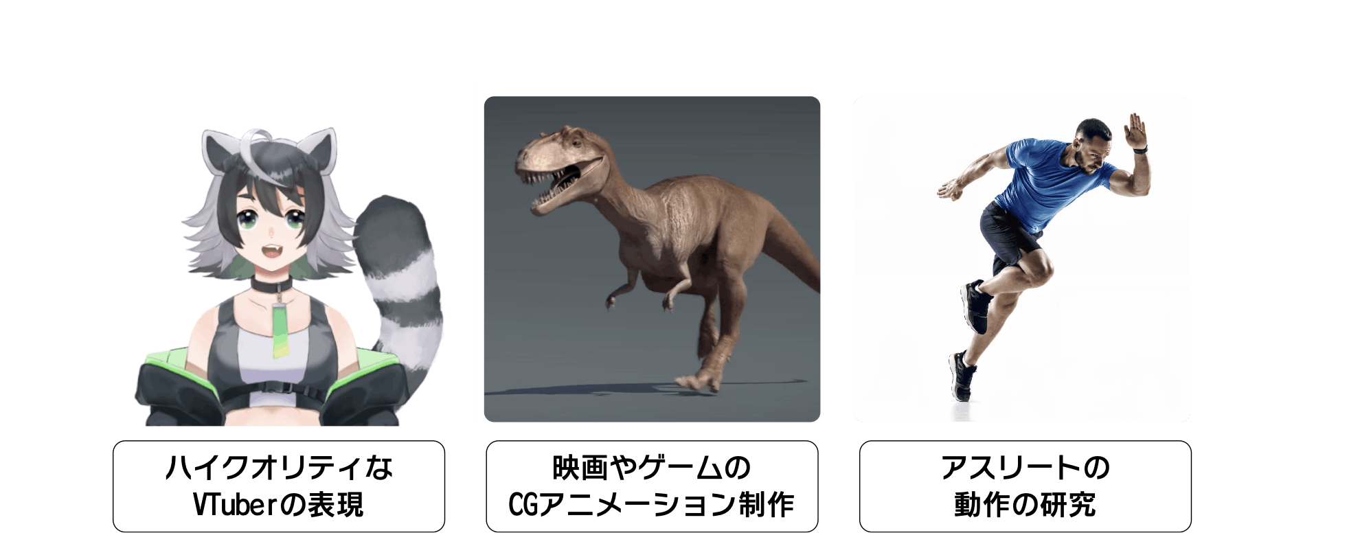 モーションキャプチャーの活用はさまざまですが、例として上げるとしたら3Dモデルを使ったライバー・VTuberです。個人・企業問わず3Dモデルを大きな場所で使いたい、多人数で企画をしたいというユーザーに貢献できるのではないかと思います。