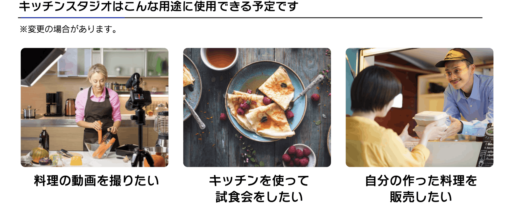 ※「キッチンスタジオ」を1時間のお試し利用ができます(施設HPからの事前予約制)。有効期限は2022年12月末までとなります。