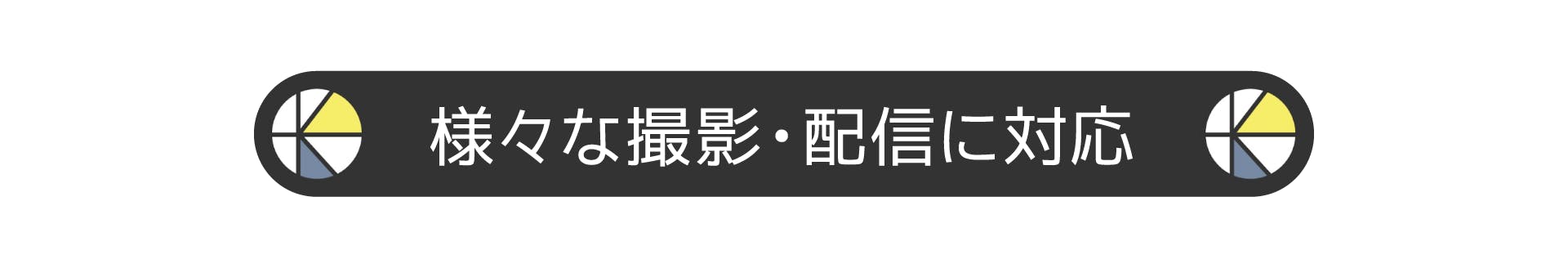 企業・団体のプロモーション活動や、最近話題のライブコマース、オンラインセミナーなど、通信環境で失敗したくないイベント時などにもおすすめです。クロマキーもあるのでお好みの背景を合成したライブ配信ができるんです。もちろん、通常のスチール・ムービー撮影にも使用できます。