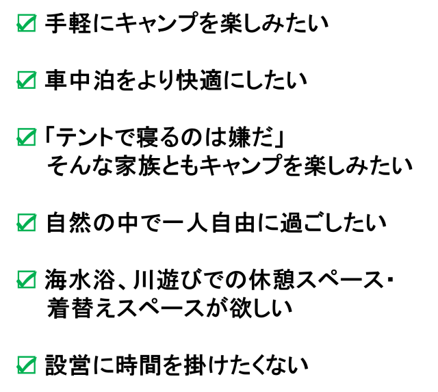 「テントで寝るのは嫌だ」そんな家族でも大丈夫