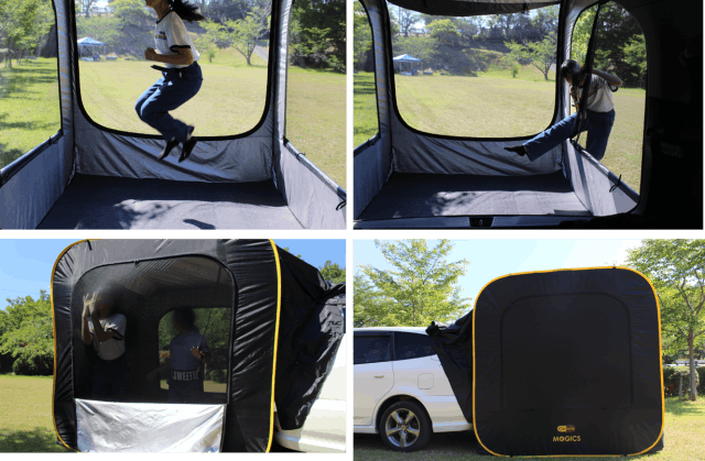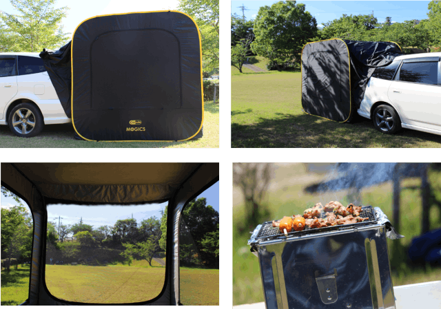 CARSULE(カースル)はMOGICS社がデザインした車に連結できる画期的なポップアップテントです。アウトドアでリビングのような快適さを実現します。キャンプやビーチ・川遊びの休憩場所、車中泊におすすめです。