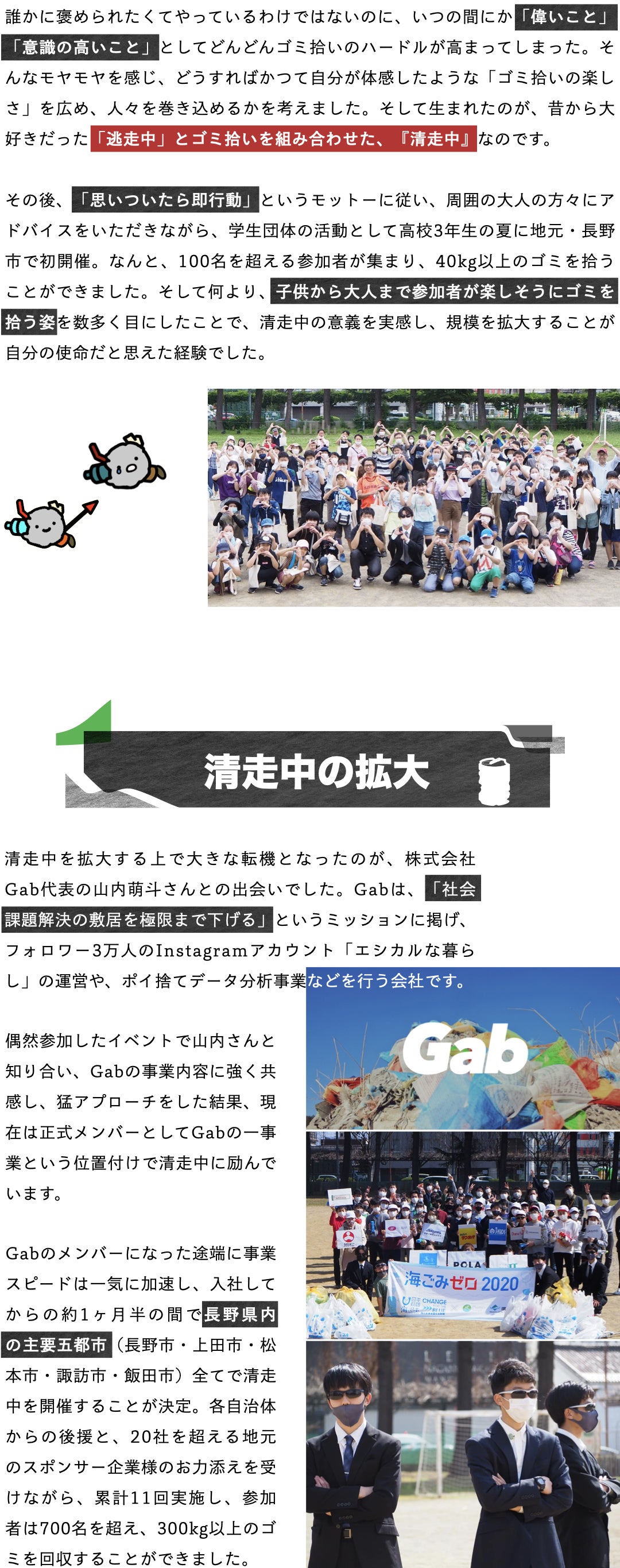 ※「清走中」は株式会社Gabの商標です。