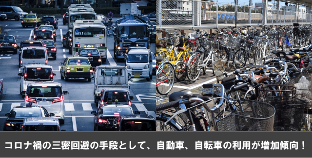 コロナ禍で3密の徹底した回避が重要になり、今まで以上に自動車、バイク、自転車などの移動手段を使用するようになったり、
