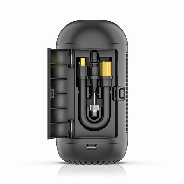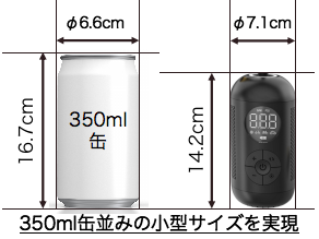350mL缶並みのサイズながらも、本体内にホースや各種アタッチメントを格納できるため、これだけあればいつでもどこでも空気入れ可能!
