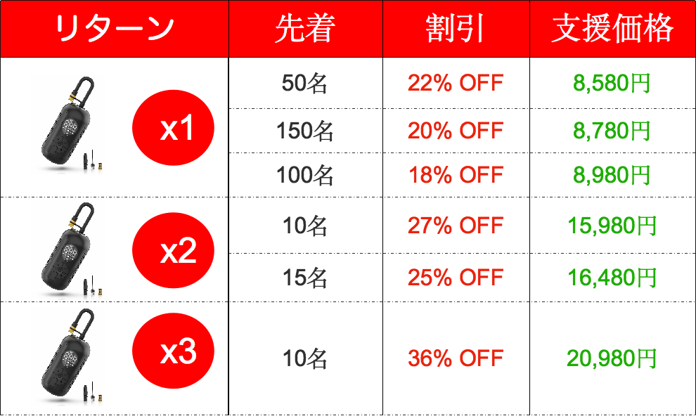 ※想定を上回る皆様からご支援を頂き、量産体制を更に充実させることができた場合、一般販売価格が予定価格を下回る可能性がございます。