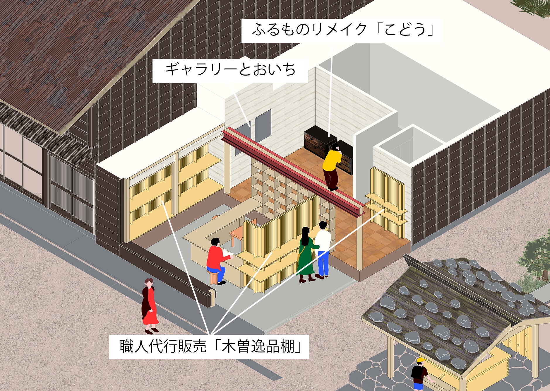 それ以外にも、信州のふるものをリメイクしてお届けする「こどう」や地元のみなさんとの関わりを育むマルシェ、木曽の美味しいものをお届けするキッチンなども、順次、行っていく予定です。