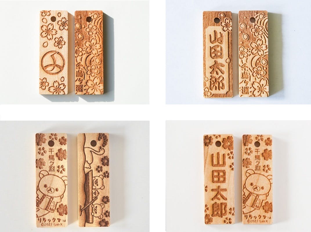 お名前やニックネームを彫ることもでき、世界でただ一つの千社札になります。デザインもクラウドファンディングオリジナルの限定品です。貴重な江戸城お濠のさくらの木をお手元にどうぞ。