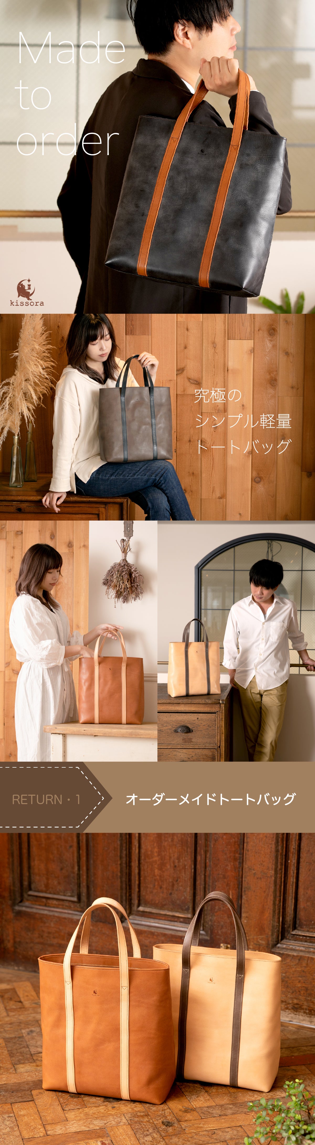 タフな牛革で作られた縦長スタイルのトートバッグがデビュー!全て本革、なのに軽量!混雑した電車内でも膝の上にポンっと乗せておけば、隣の人の邪魔にならないジャストサイズが使いやすい!経年変化も美しい、永く永く使えるオーダーメイドバッグです。