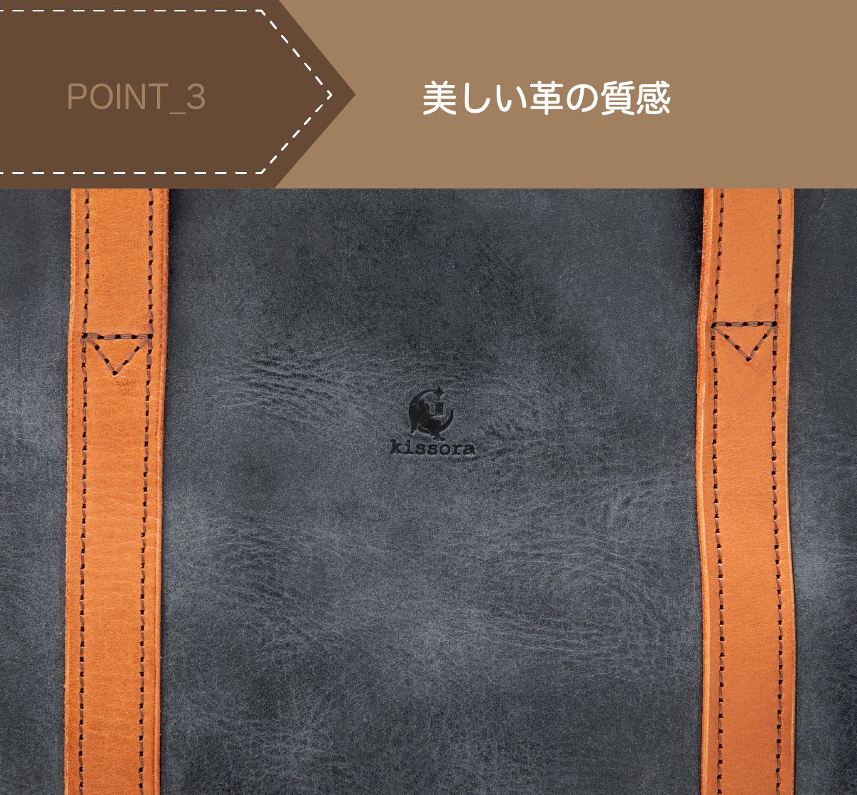 kissoraと深い付き合いのある革屋『NAKASEN』さんから仕入れたレザーを使用。ここでしか売っていない特別なレザーを使って作られています。