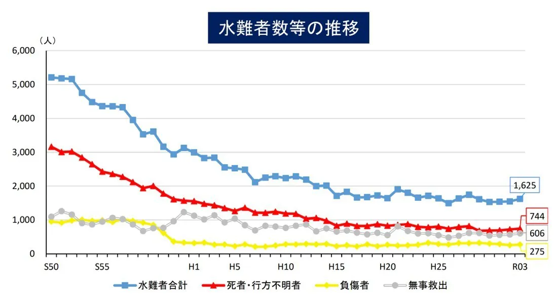 そして、2003年頃から現在に至るまで水難者の発生件数は横ばいです。