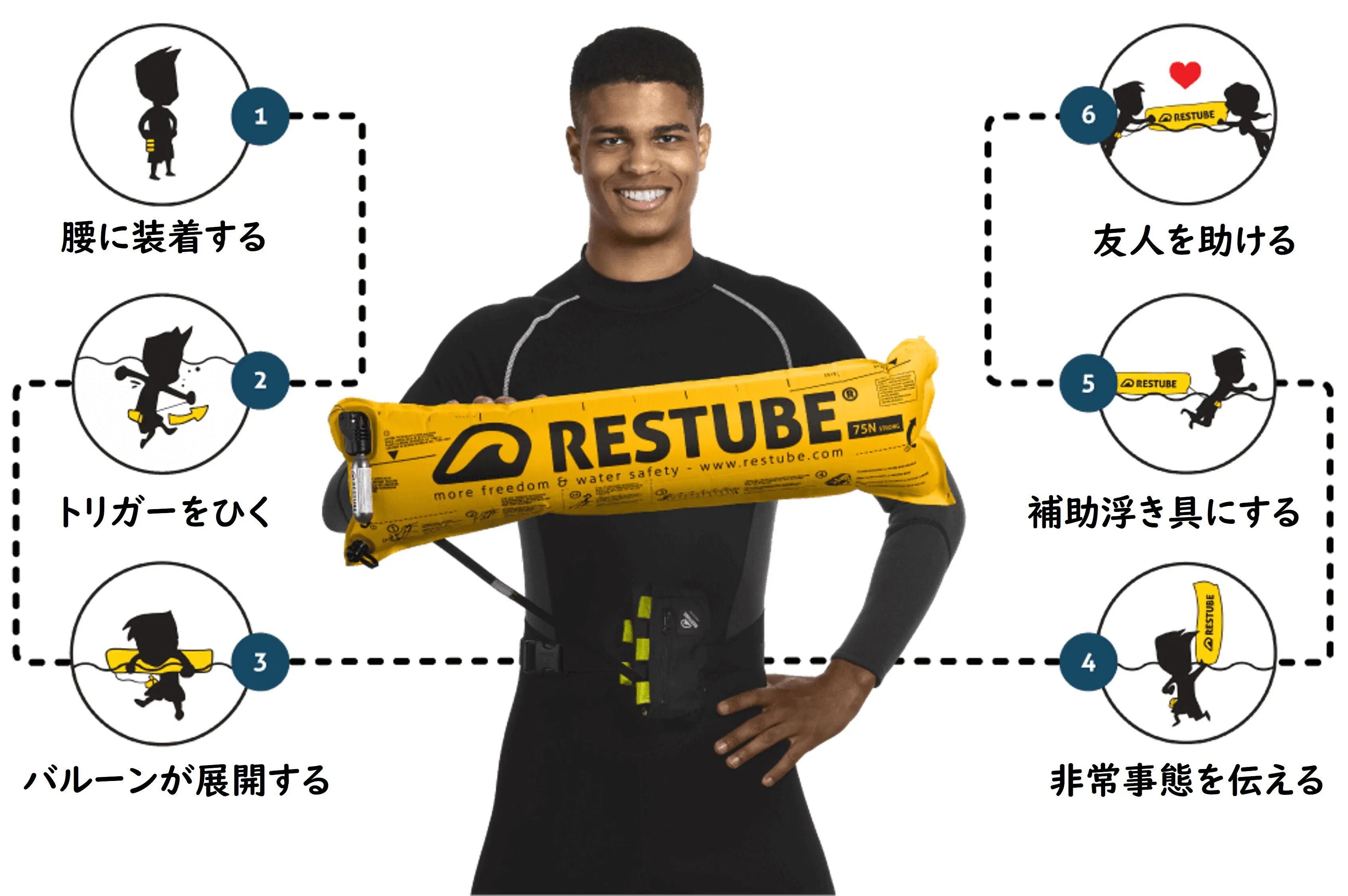RESTUBEは欧州を中心に25か国に広がり、70ものマリンスポーツの大会、学生の競技で標準装備として採用されています。