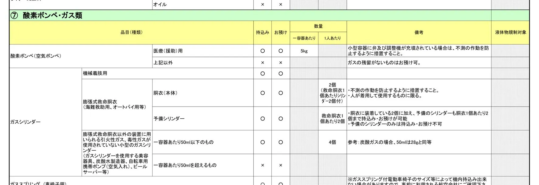 参照PDF : 機内持込み・お預け手荷物における危険物の代表例 (国土交通省)