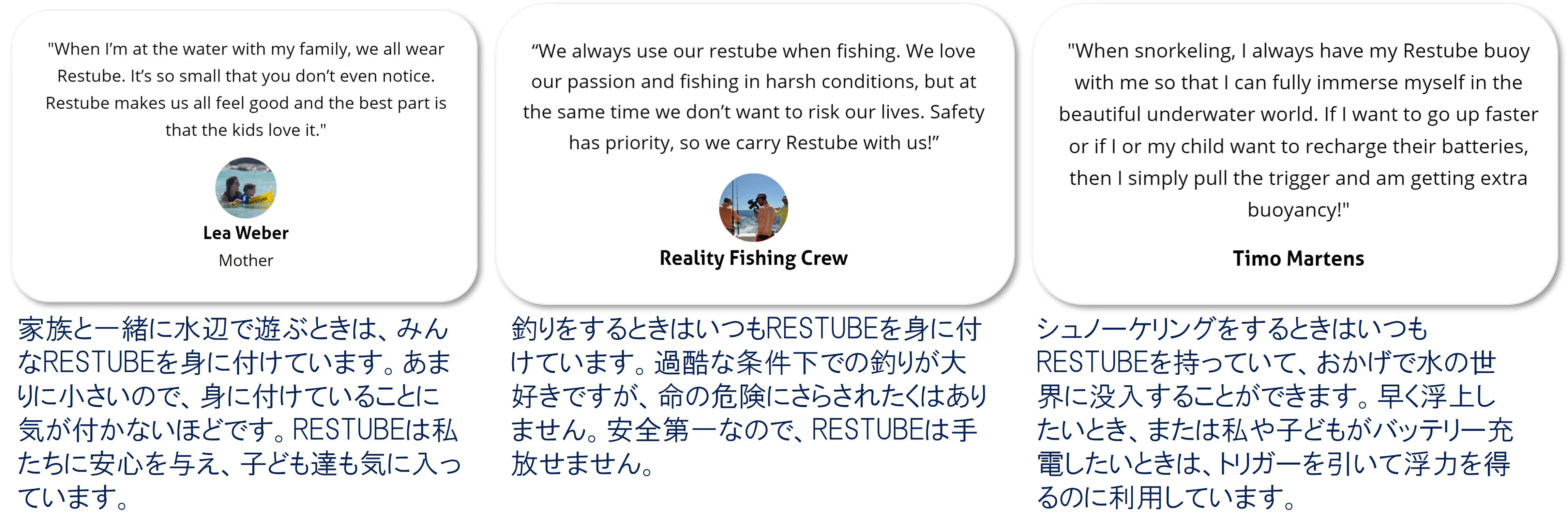 RESTUBEはドイツで開発され、既に45 人以上のユーザーからRESTUBEによって危機的な状況から助かることができたと報告されています。