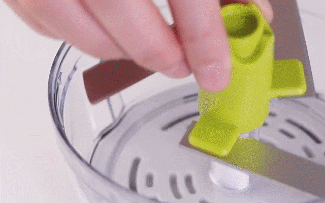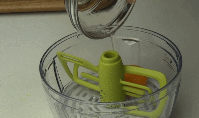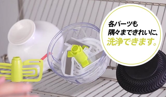 さらに容器を斜めにして回すことで、中の食材の刻み具合を目で確認できるので刻み過ぎの心配もありません。