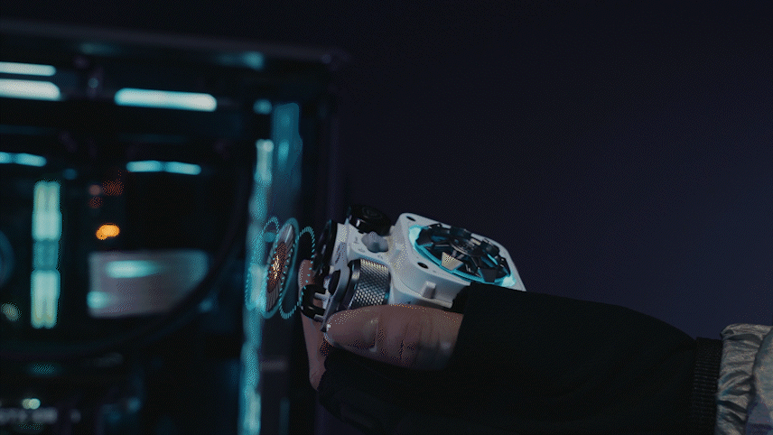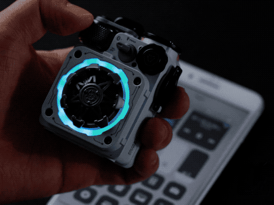 MUZEN CYBERCUBE Premium(サイバーキューブ・プレミアム) は、作業中のちょっとした手遊びや退屈しのぎに最適な楽しいガジェットの役目も果たします。スピーカーの前面には、宇宙船のターボファンジェットをイメージしたハンドスピナーが搭載されています。手に持って軽く回すと、静かに高速で回転し、手持ち無沙汰を軽減。