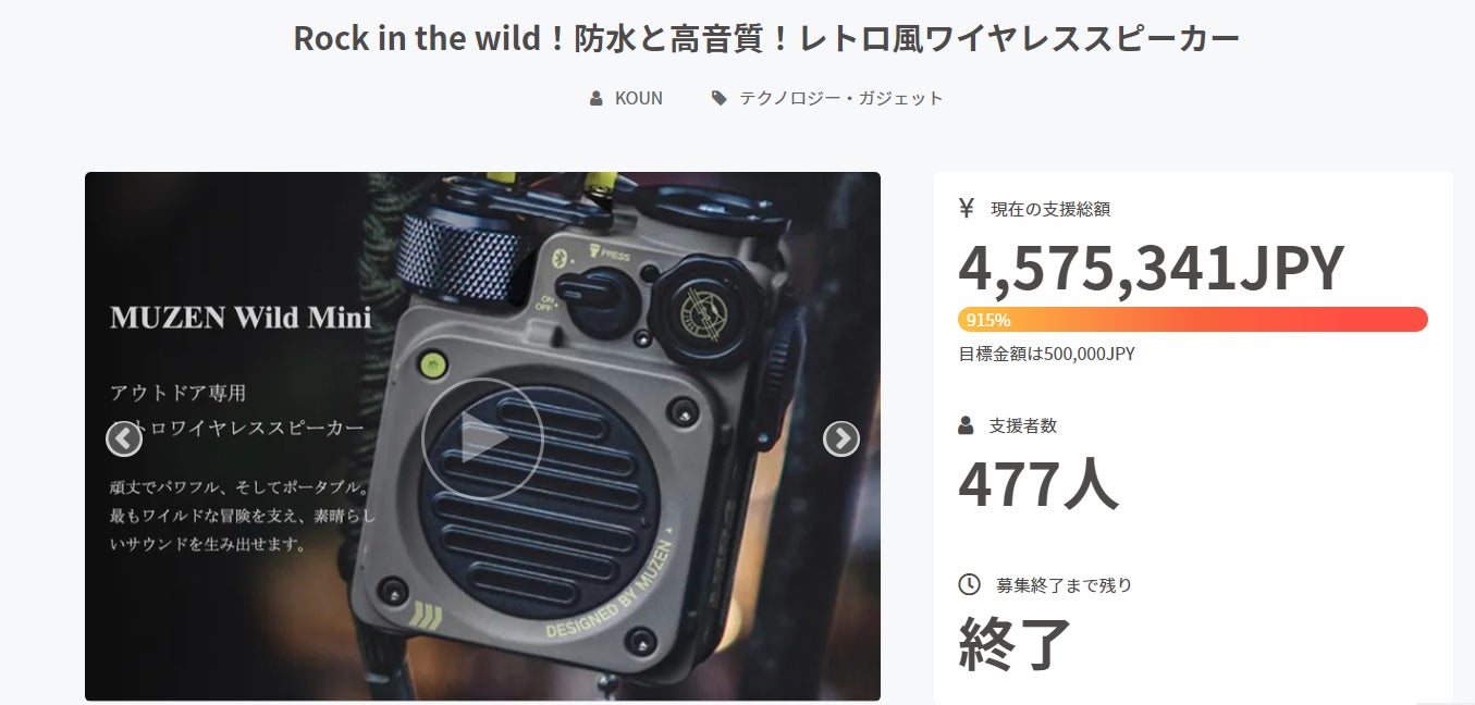 リンク:Rock in the wild!防水と高音質!レトロ風ワイヤレススピーカー - CAMPFIRE (キャンプファイヤー) (camp-fire.jp)