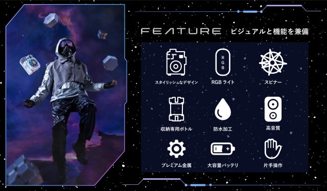 カスタムされたSF宇宙サウンドでより没入感を体験!(※電源オン、電源オフ、Bluetooh接続の効果音)