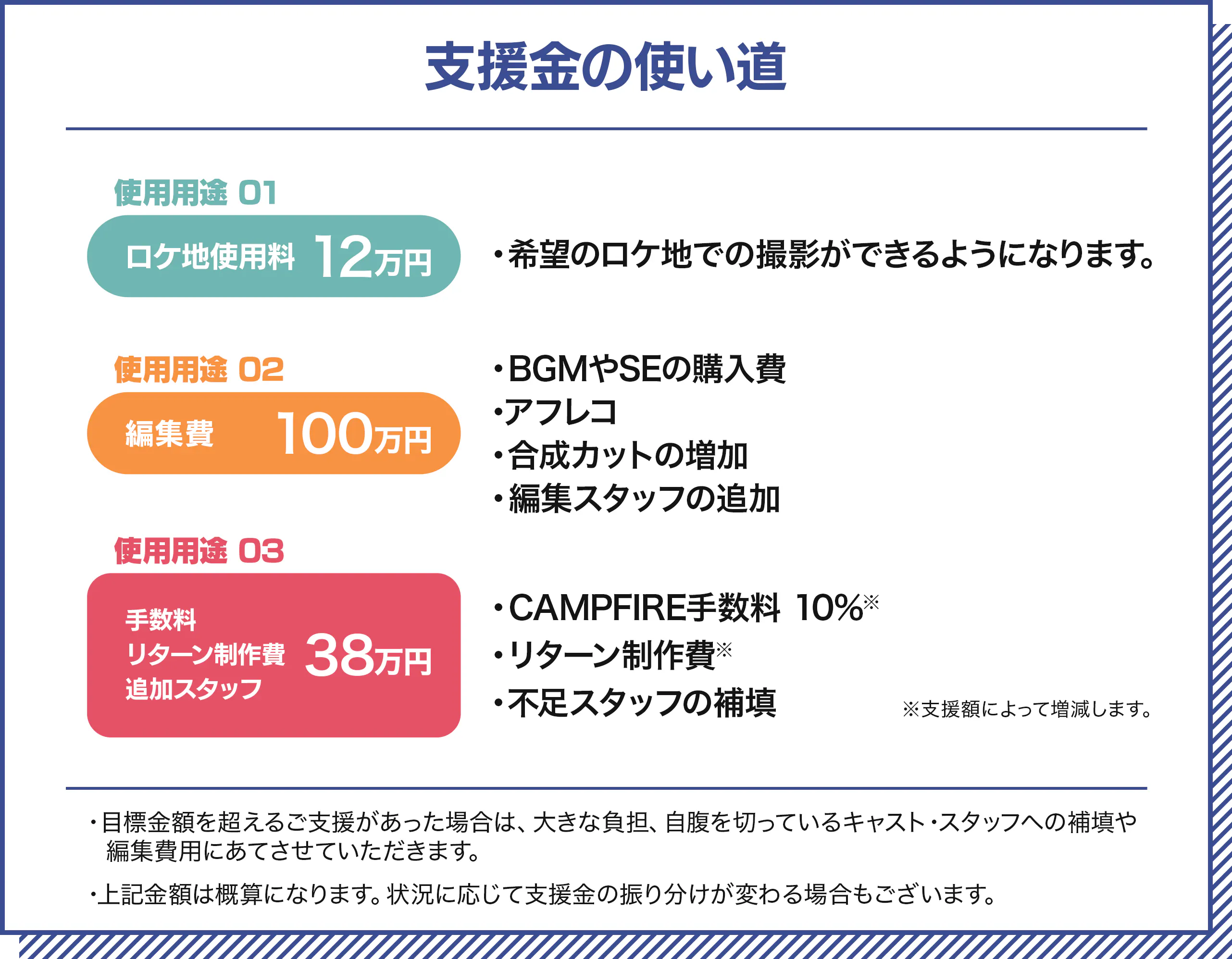 ※アダルト・政治・宗教・著しく残虐的・他人を侮辱するなど、公序良俗に反するCMはお断りさせていただく場合がございます。その際の支援キャンセルや返金はできません。