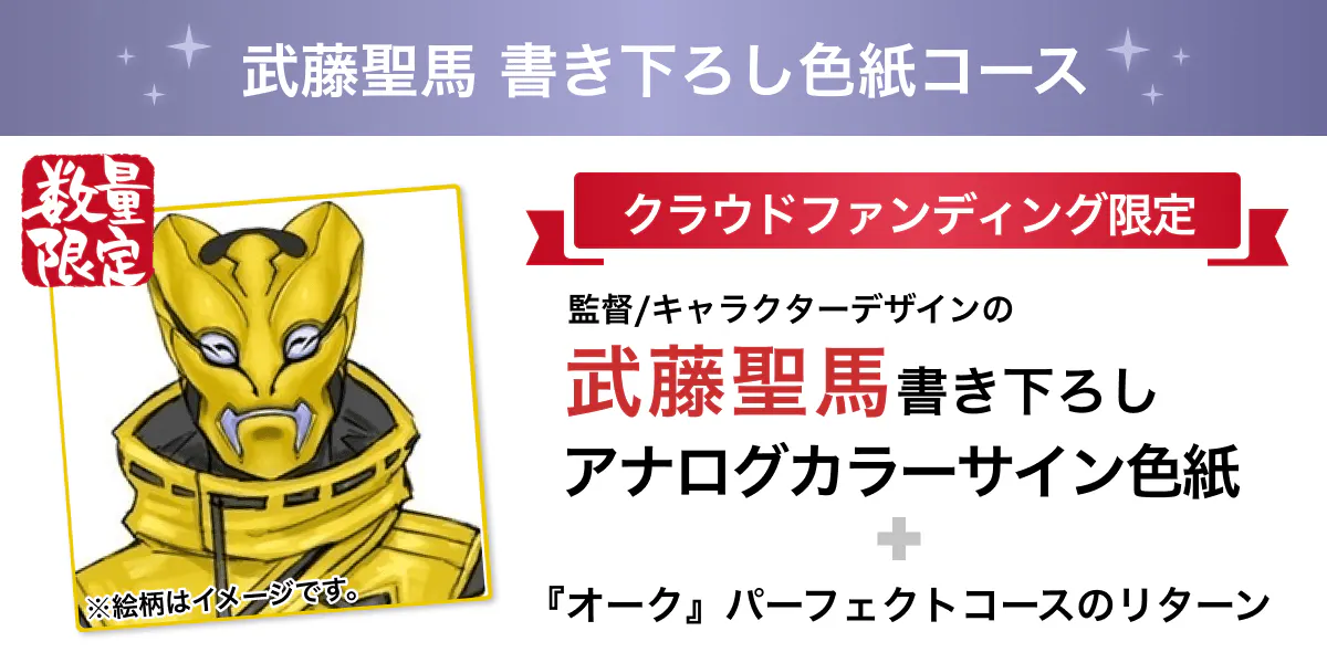 →監督/キャラクターデザイナーの武藤聖馬が、クラウドファンディング限定であなたのために1枚ずつ書き下ろします。