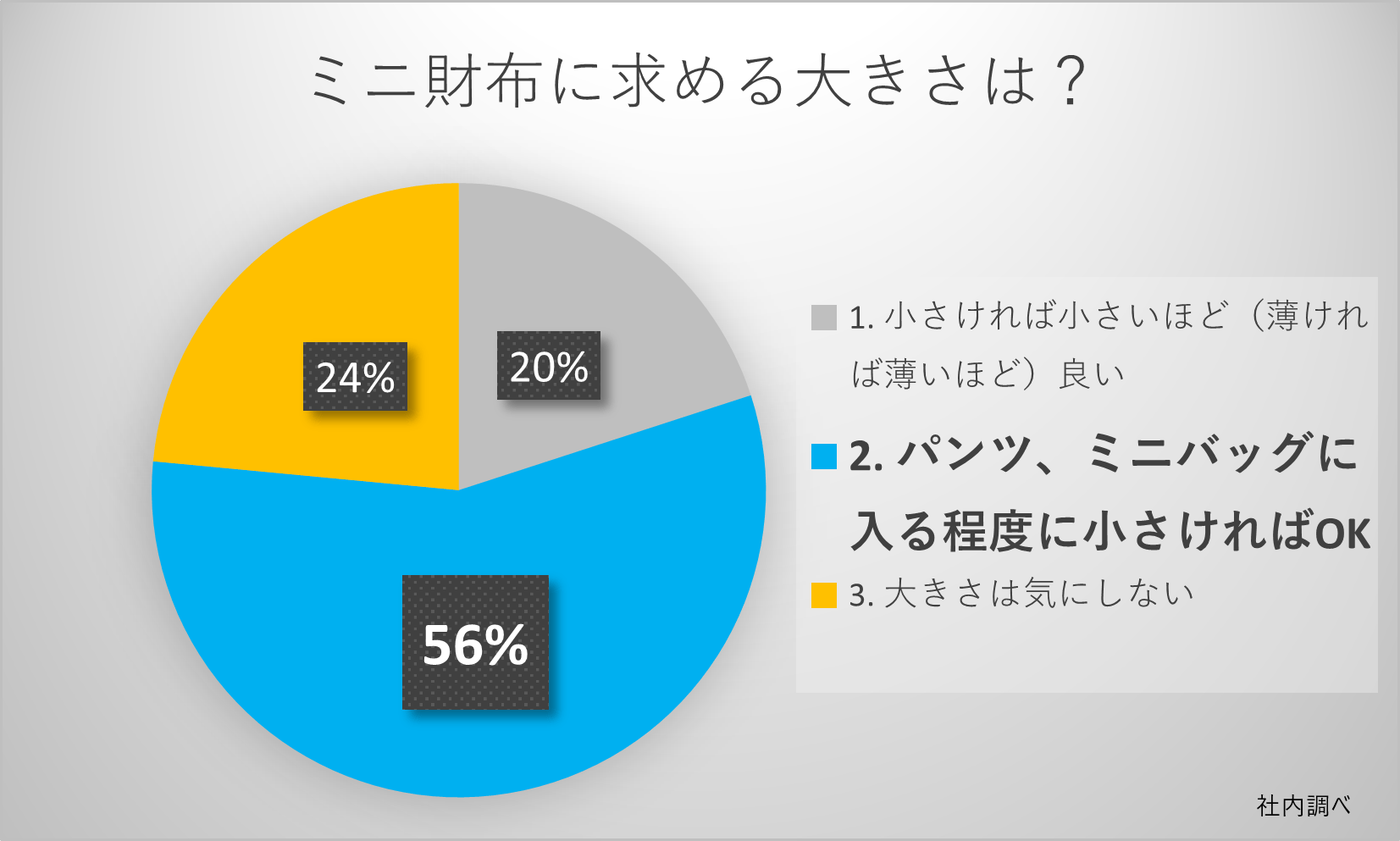 「パンツ(ポケット)、ミニバッグに入る程度に小さければOK」が56%以上支持されました。