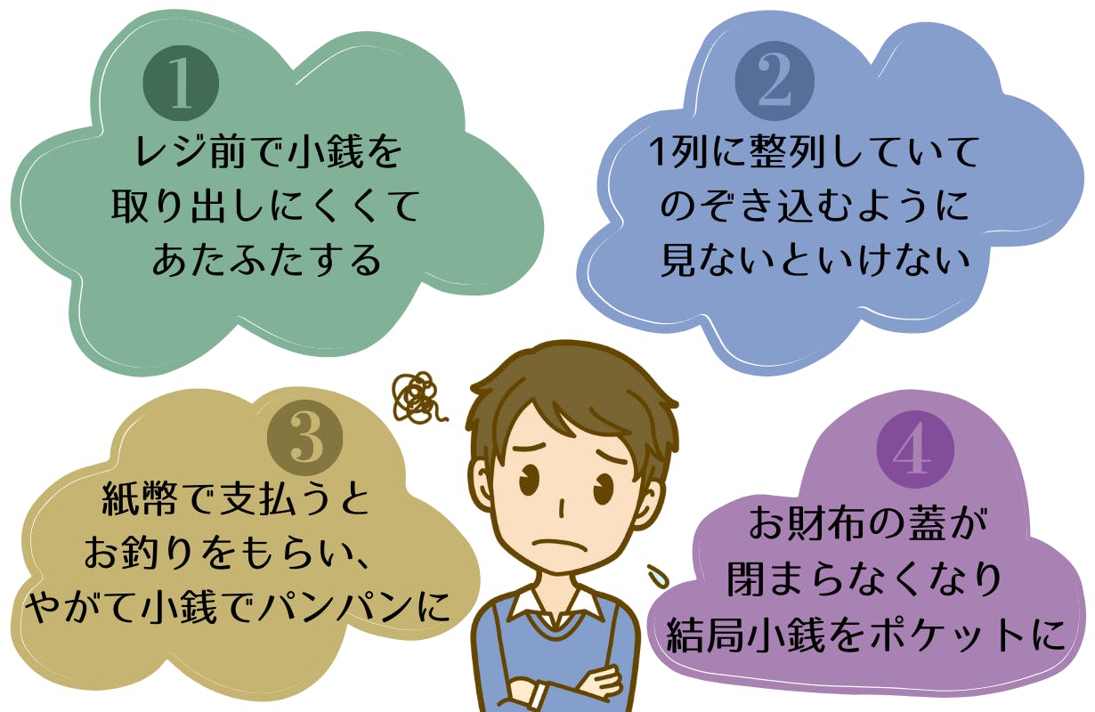 小銭はこまめに使うようにすれば、お釣りで溢れることを避けられます。