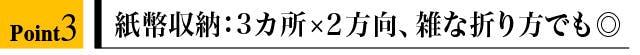 紙幣は縦、横、いずれの向きでも収納出来ますので、例えば、