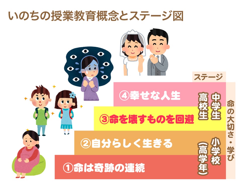 下図は「いのちの授業教育概念とステージ図」を表わしています。