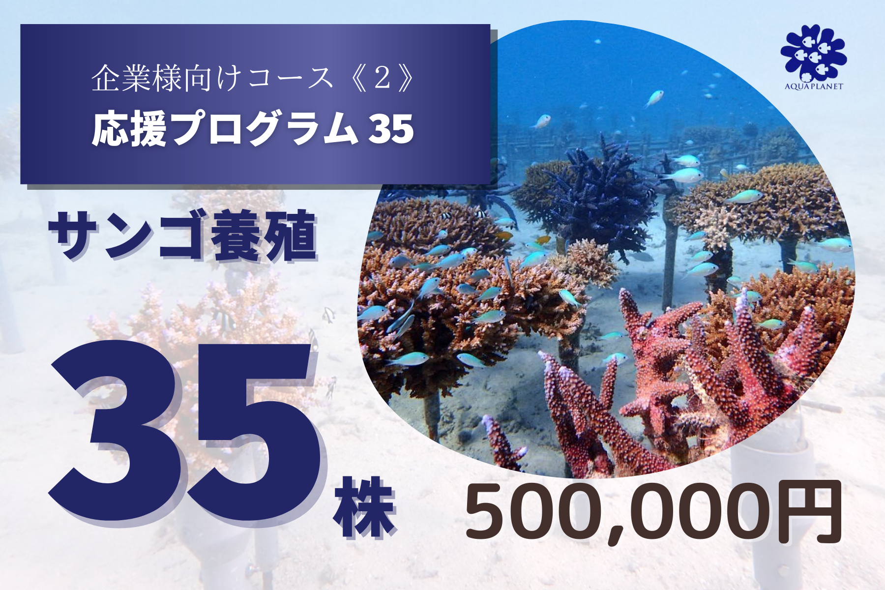 アクアプラネットでは通常サンゴの苗を1株用意するのに、3,500円を頂いています。(実際に苗を海に植えるには、他にもたくさんの費用がかかります)