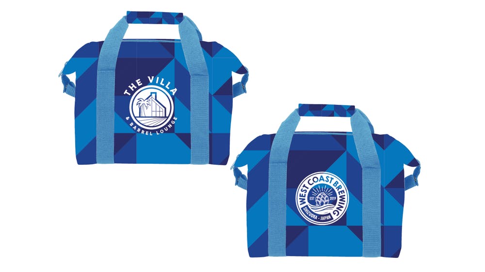 WCBとThe Villa & Barrel Loungeのロゴが入ったオリジナル保冷バッグです。