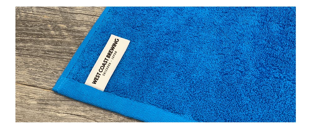 The Villa & Barrel Loungeのロゴアイコン、タグにはWest Coast Brewingのロゴが入ったオリジナルの「バスタオル(68cm×130cm) x 1枚」+「フェイスタオル(34cm×80cm) x 1枚 」のセットです。こちらは、150セット限定のカラーです!