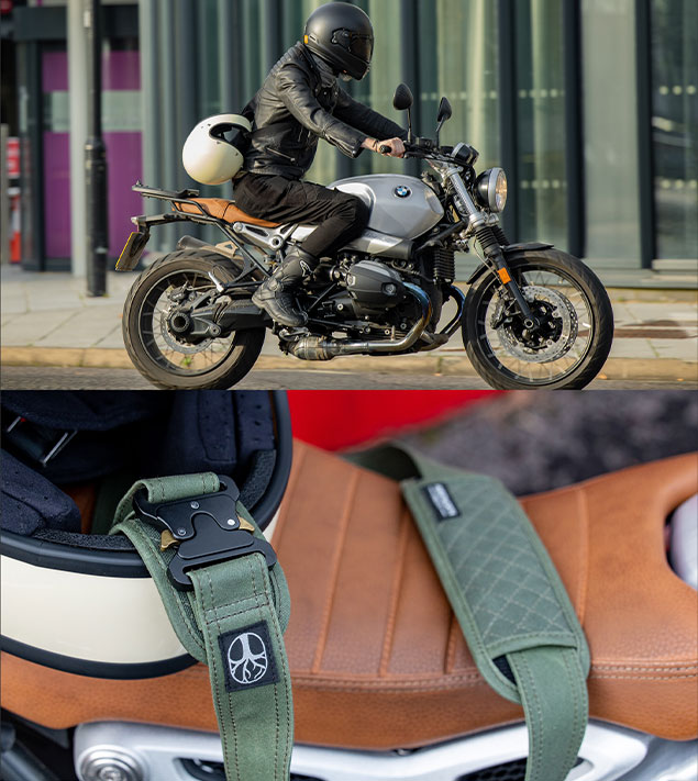SLINGは、イギリスで産まれたライダーのための『簡単装着できる、持ち運び用のバイク用ヘルメットストラップ』です。