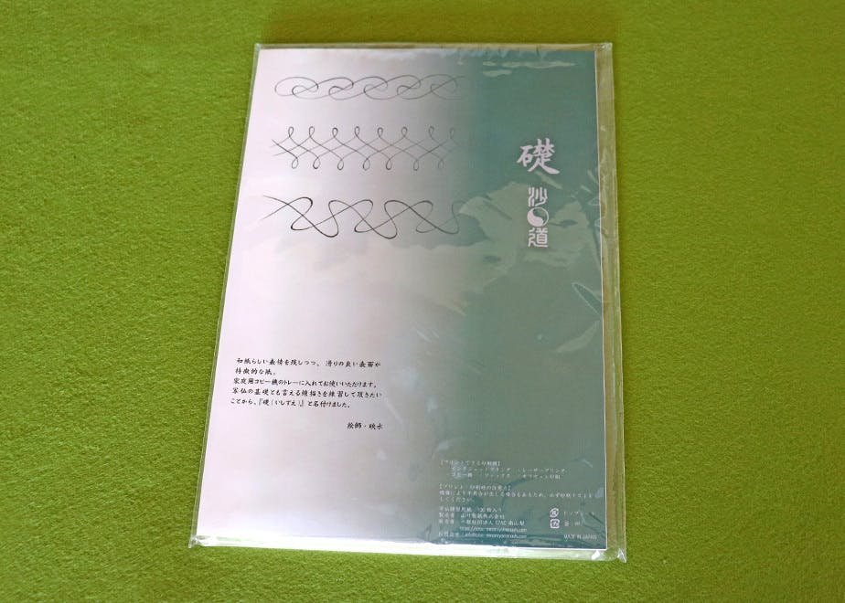 描き味の異なる2種類の清書用の和紙と、練習用の和紙1種。