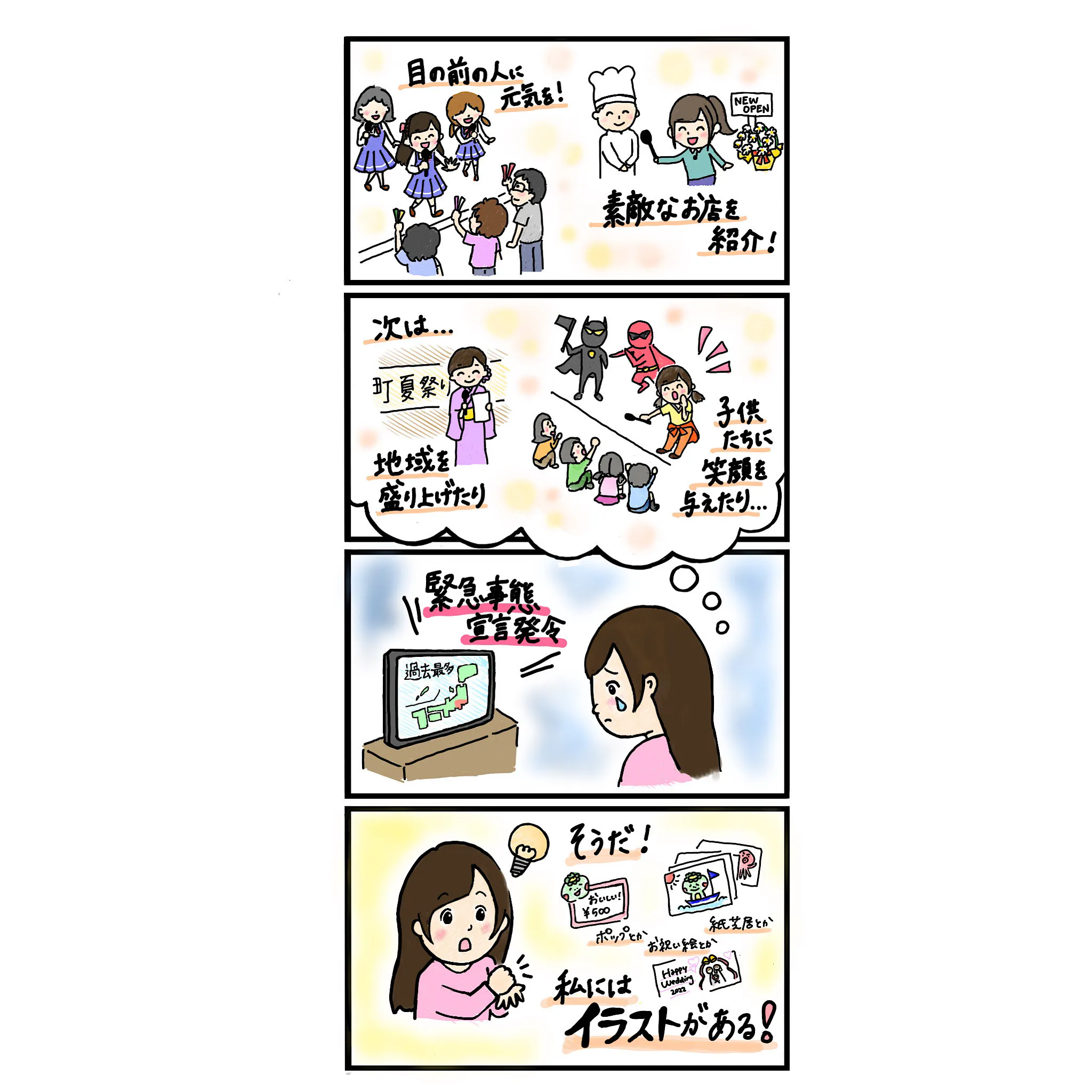 感染症拡大防止として多くのイベントが中止となり、これまで行なってきた活動が思うようにできなくなりました。今の方法以外で、人を楽しませることはないかと考えたときに、幼い頃からの自分の特技に辿り着きました。