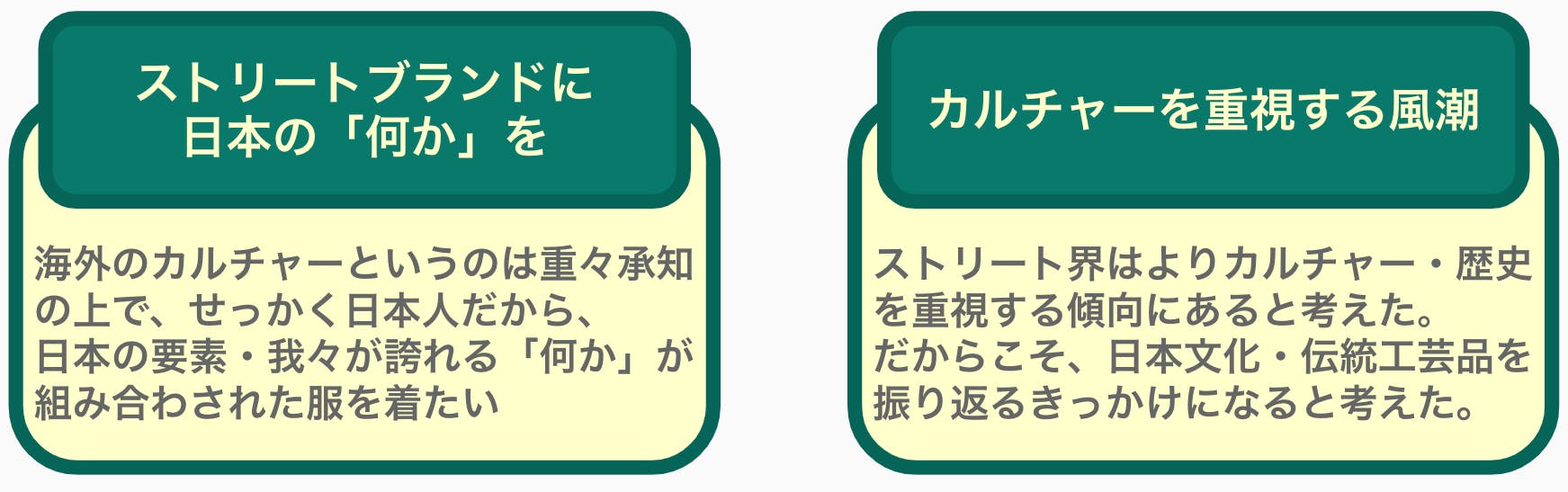 その上で、カルチャーを重視する風潮のあるストリート界は、文化・歴史込みで販売する時に伝統工芸品との相性が良いと考えました!!