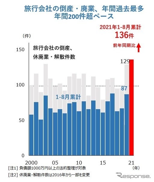 ※データ参照元:「コロナ禍の旅行業界、先行き悲観から事業を畳む「あきらめ廃業」増加へ…帝国データバンク(2021年9月13日(月)掲載記事より