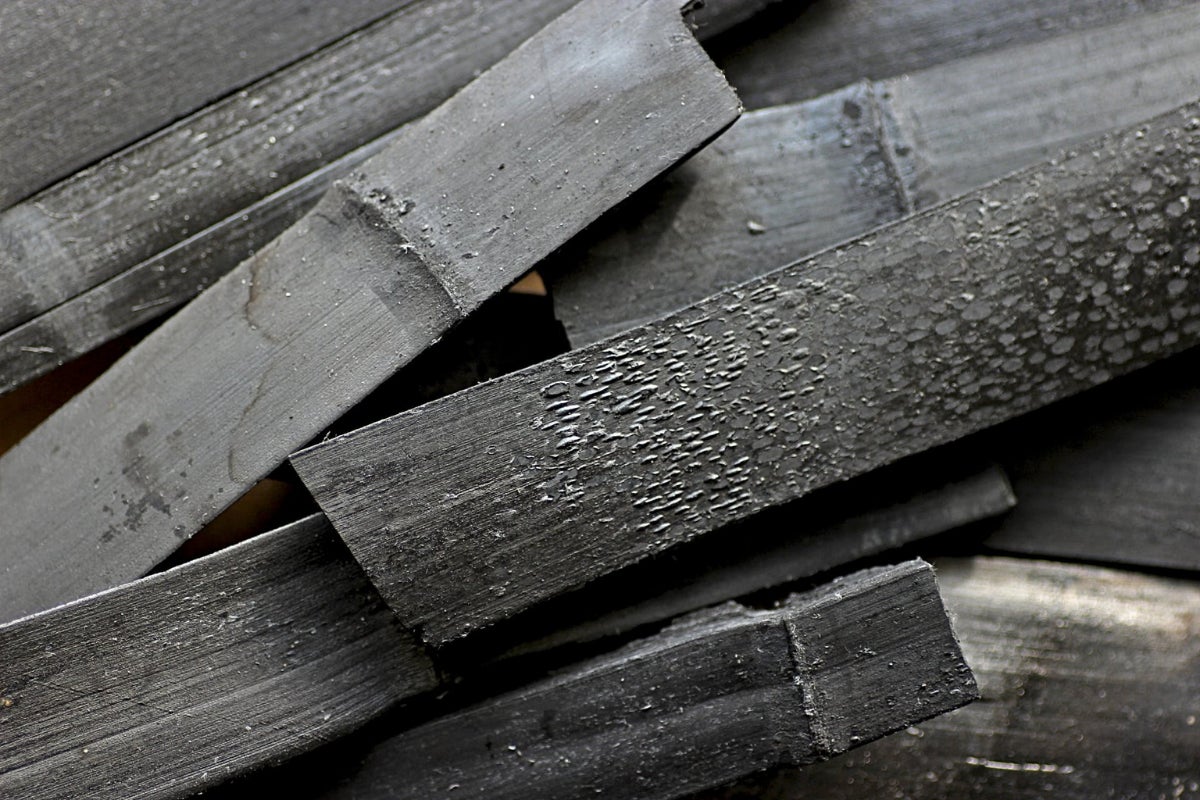 ①CO2削減:竹を伐採し(古竹)竹炭を作る。