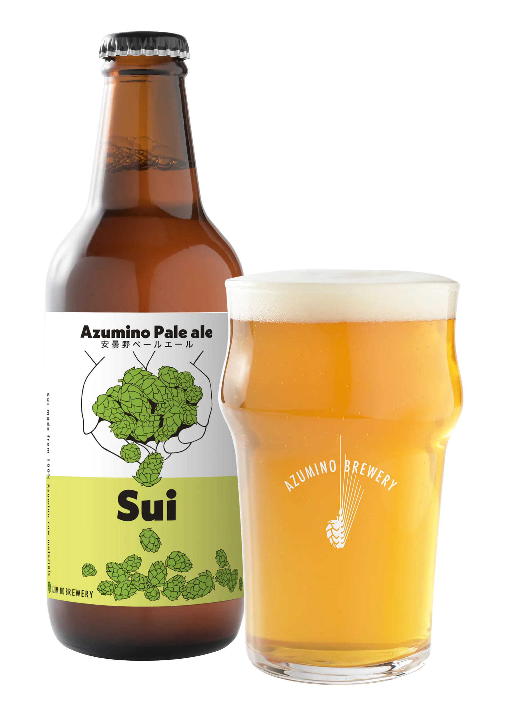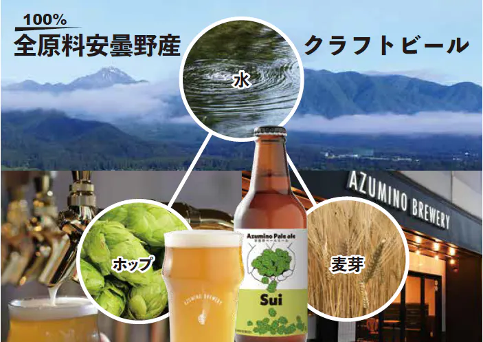 安曇野の「水」と「大麦」、「ホップ」を活用した日本初の原料100%安曇野エールです。