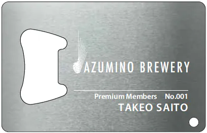 名前入りのロゴ入り栓抜きのプレミアム会員カードです。
