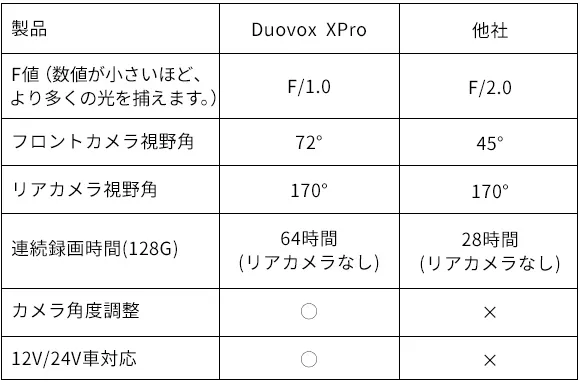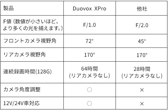 Duovox XProは画角を通常の45度から