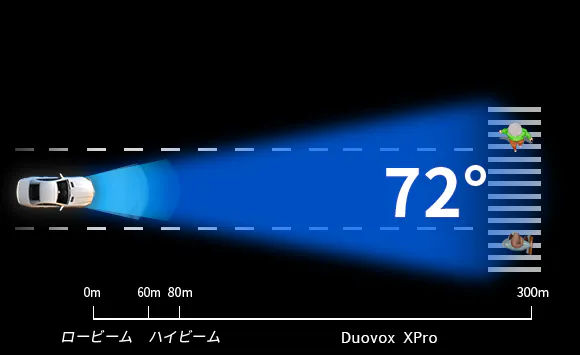 最大72度までに拡大し、ヘッドライトで照らせる