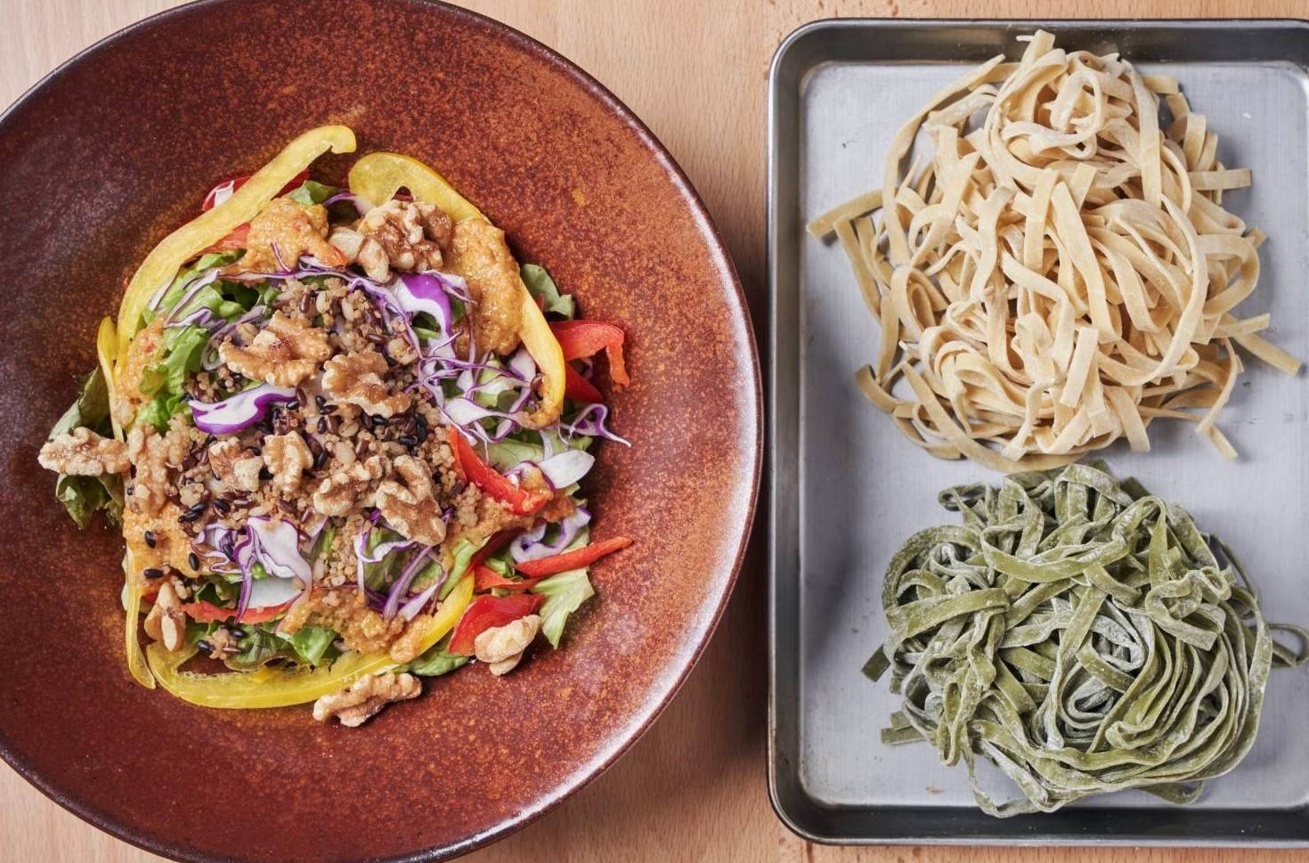 国産野菜をたっぷり使った平打ち生パスタを通して