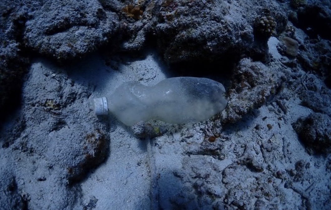 ↑慶良間諸島で発見したペットボトル。こんなに外見が変わってしまっても海に存在し続けます。