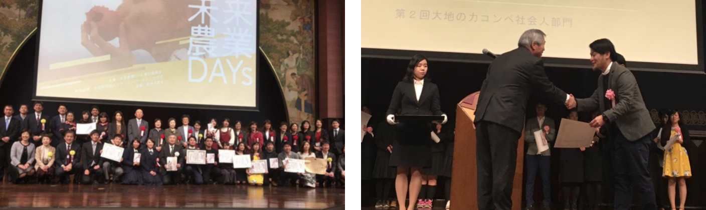 そして、チームメンバーである地元農家さん達の協力のもと、カプセルの形状や培養土を整え、2018年3月に未来農業DAYs主催「第2回大地の力コンペ」(特別協賛:財団法人イオンワンパーセントクラブ、後援:農林水産省)で最高賞受賞。