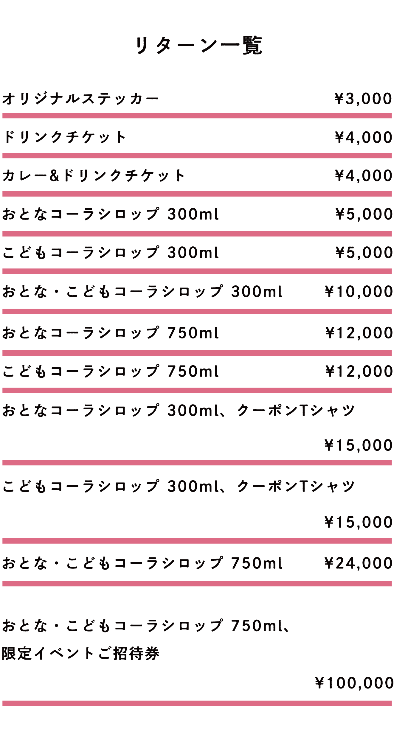 リターンの商品はコーラの美味しい夏までにお届け予定です。 数量限定でお得な早割商品もご用意しておりますので、詳しくはリターンページをご確認ください。