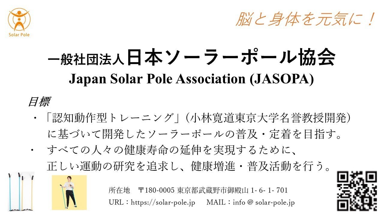 さらに普及を推進するために、一般社団法人日本ソーラーポール協会(Japan SolarPole Association JASOPA)https://solarpole.jp を立ち上げました。