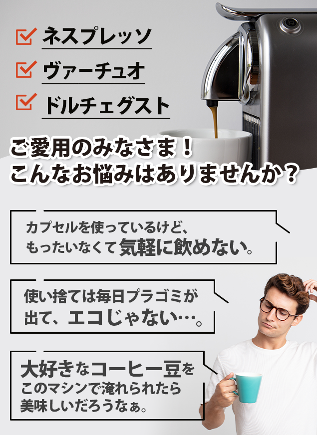 WayCapであれば、カプセルコーヒーの利便性とエコを両立することができます。